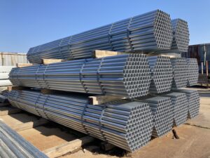 単管パイプの入荷ではコンテナから弊社スタッフが